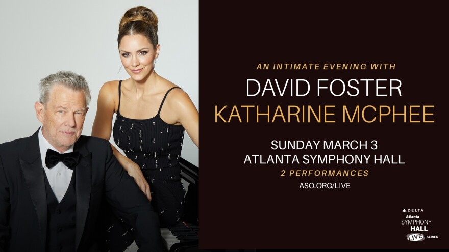 Support for WCLK is made possible in part by the Atlanta Symphony Hall Live, presenting Grammy Award-Winning Producer David Foster and Singer-Songwriter and Actress Katharine McPhee on Sunday, March 3rd with shows at 3pm and 8pm. The duo will perform songs by Celine Dion, Whitney Houston, Earth Wind and Fire and many others. They will tell stories of how they met, what the songs mean to them, and the stories behind the songs. More information and tickets are available at ticketmaster.com and aso.org.