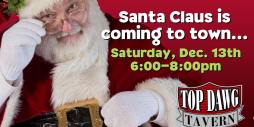 You better watch out, you better not cry, you better not pout, I'm telling you why…Santa Claus is coming, to town! 🎅🏽 Yes, you read that right, Santa, the big guy himself, will be making an appearance on Saturday, December 13th from 6:00 to 8:00pm! Bring your kids (or fun loving friends) to meet Santa at Top Dawg Tavern! Make sure to bring your Christmas List for him to take back to the North Pole and your camera phone to take lots of photos!