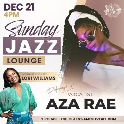 Get your tickets to the final Sunday Jazz Lounge show of 2025 at St. James Live featuring Aza Rae!
