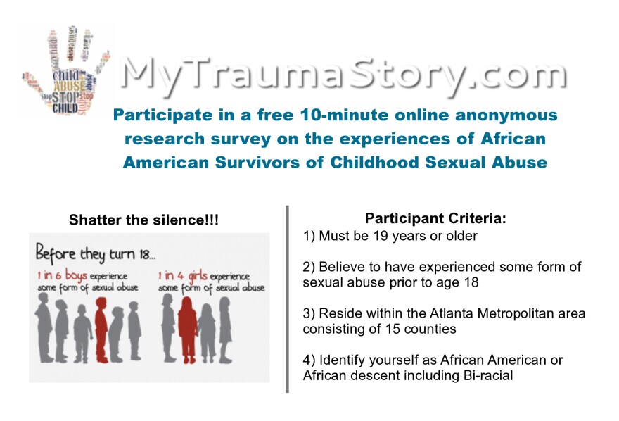 You can do your part to shatter the silence by taking part in a free, 10-minute online ANONYMOUS research survey on the experiences of African American Survivors of Childhood Sexual Abuse.