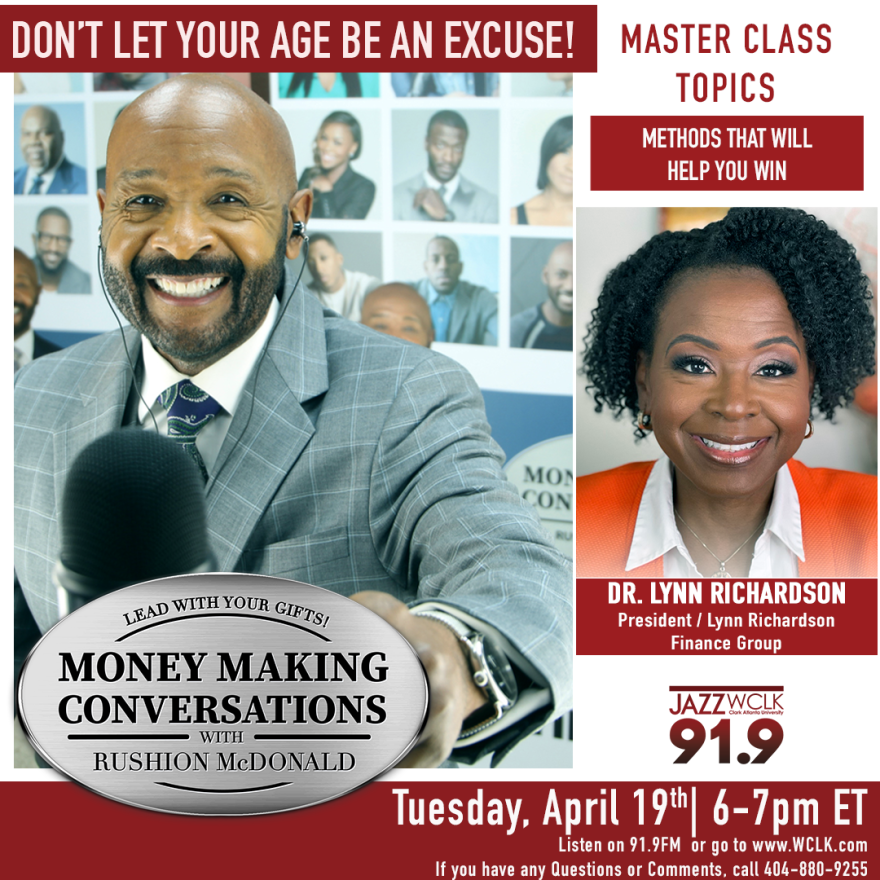 Join Rushion McDonald Tuesday evening at 6pm for Money Making Conversations Master Class. Rushion will feature the 'bragging segment' where local and national entrepreneurs call in with their success stories. Then he'll be joined by Financial Advisor Dr. Lynn Richardson with Lynn Richardson Financial Group. They'll talk about wealth building strategies and take your calls and questions, live, at 404-880-9255.